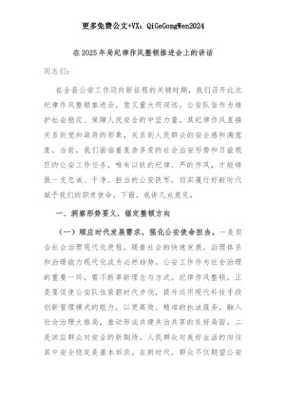 【七哥公文】2025年:在2025年局纪律作风整顿推进会上的讲话+更多免费公文+VX:QiGeGongWen2024+更多免费公文+VX:QiGeGongWen2024