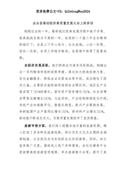 【七哥公文】2025年:在全县推动经济高质量发展大会上的讲话+更多免费公文+VX:QiGeGongWen2024+更多免费公文+VX:QiGeGongWen2024