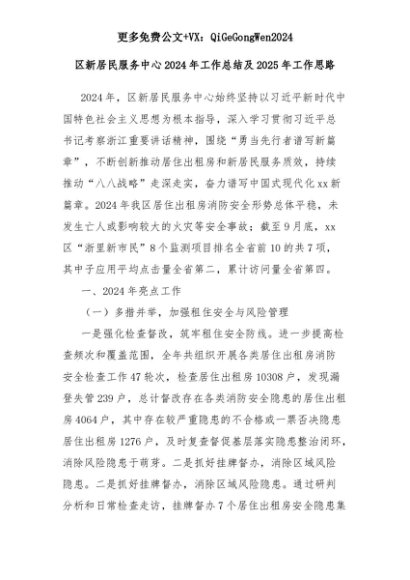 【七哥公文】2025年:区新居民服务中心2024年工作总结及2025年工作思路+更多免费公文+VX:QiGeGongWen2024+更多免费公文+VX:QiGeGongWen2024