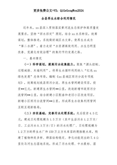 【七哥公文】2025年:全县再生水综合利用情况+更多免费公文+VX:QiGeGongWen2024+更多免费公文+VX:QiGeGongWen2024
