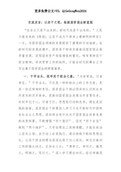 【七哥公文】2025年:交流发言:以实干之笔,绘就国资国企新蓝图+更多免费公文+VX:QiGeGongWen2024+更多免费公文+VX:QiGeGongWen2024