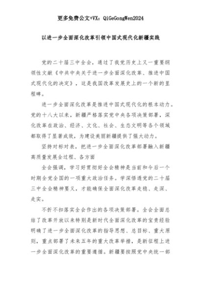 【七哥公文】2025年:以进一步全面深化改革引领中国式现代化新疆实践+更多免费公文+VX:QiGeGongWen2024+更多免费公文+VX:QiGeGongWen2024