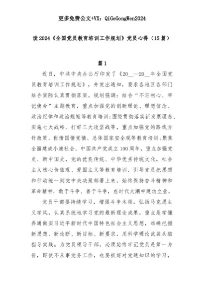 【七哥公文】2025年:(15篇)读2024《全国党员教育培训工作规划》党员心得+更多免费公文+VX:QiGeGongWen2024+更多免费公文+VX:QiGeGongWen2024