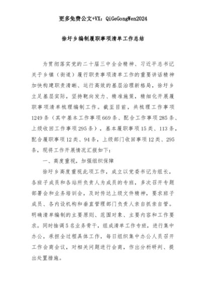 【七哥公文】2025年:xx乡编制履职事项清单工作总结+更多免费公文+VX:QiGeGongWen2024+更多免费公文+VX:QiGeGongWen2024