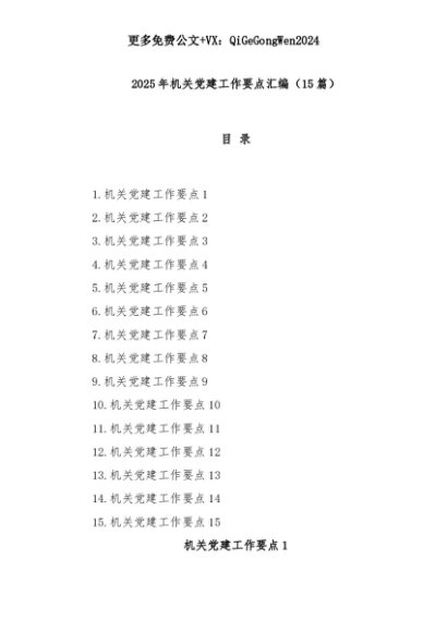 【七哥公文】2025年:(15篇)2025年机关党建工作要点汇编+更多免费公文+VX:QiGeGongWen2024+更多免费公文+VX:QiGeGongWen2024