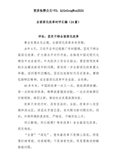 【七哥公文】2025年:(24篇)全面深化改革时评汇编+更多免费公文+VX:QiGeGongWen2024+更多免费公文+VX:QiGeGongWen2024