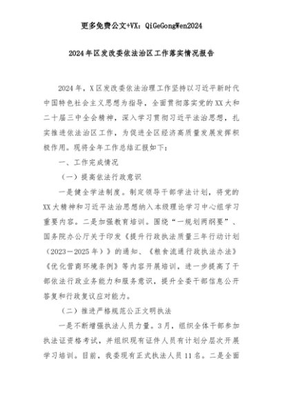 【七哥公文】2025年:2024年区发改委依法治区工作落实情况报告+更多免费公文+VX:QiGeGongWen2024+更多免费公文+VX:QiGeGongWen2024