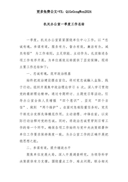 【七哥公文】2025年:【七哥公文】机关办公室一季度工作总结+更多免费公文+VX:QiGeGongWen2024+更多免费公文+VX:QiGeGongWen2024
