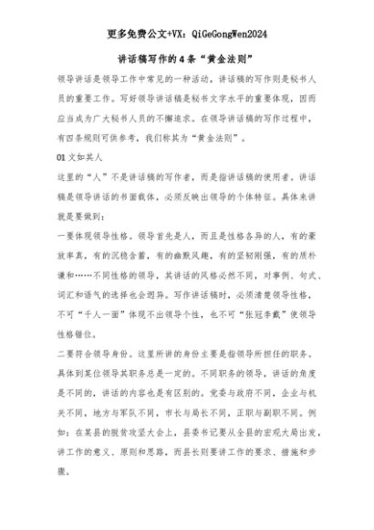 【七哥公文】2025年:【七哥公文】讲话稿写作的4条“黄金法则”+更多免费公文+VX:QiGeGongWen2024+更多免费公文+VX:QiGeGongWen2024