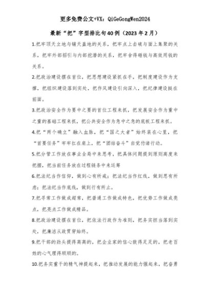 【七哥公文】2025年:【七哥公文】最新“把”字型排比句40例(2023年2月)+更多免费公文+VX:QiGeGongWen2024+更多免费公文+VX:QiGeGongWen2024