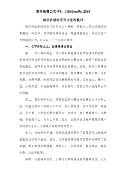 【七哥公文】2025年:【七哥公文】领导讲话的写作方法和技巧+更多免费公文+VX:QiGeGongWen2024+更多免费公文+VX:QiGeGongWen2024