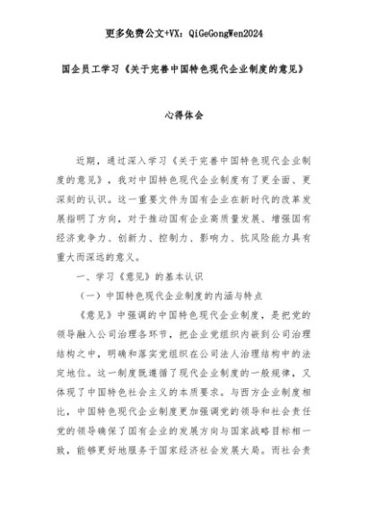 【七哥公文】2025年:【七哥公文】国企员工学习《关于完善中国特色现代企业制度的意见》心得体会+更多免费公文+VX:QiGeGongWen2024+更多免费公文+VX:QiGeGongWen2024