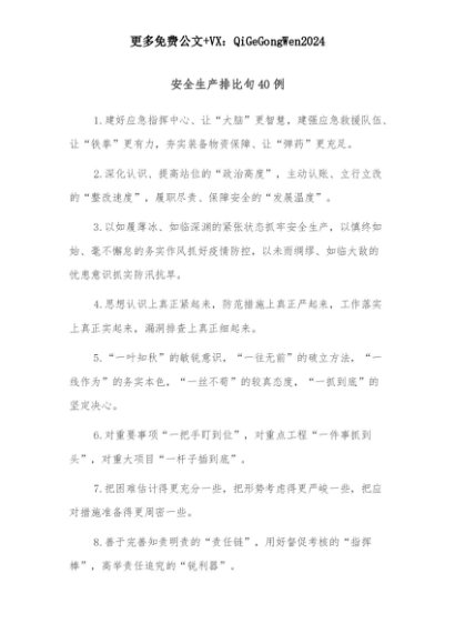 【七哥公文】2025年:【七哥公文】安全生产排比句40例+更多免费公文+VX:QiGeGongWen2024+更多免费公文+VX:QiGeGongWen2024