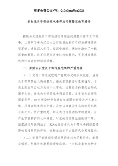 【七哥公文】2025年:【七哥公文】参加党员干部违规吃喝突出问题警示教育感悟+更多免费公文+VX:QiGeGongWen2024+更多免费公文+VX:QiGeGongWen2024