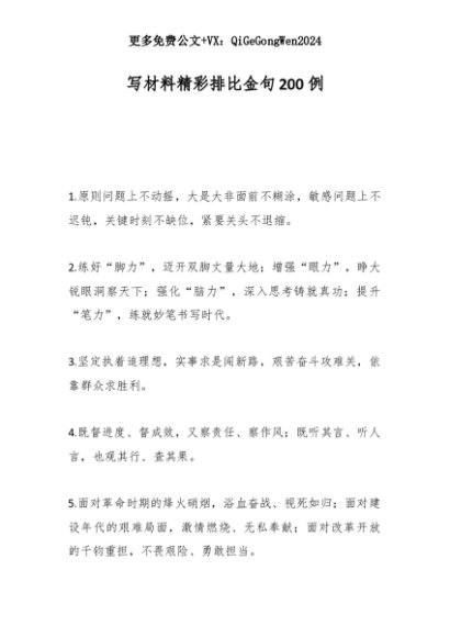 【七哥公文】2025年:【七哥公文】写材料精彩排比金句200例+更多免费公文+VX:QiGeGongWen2024+更多免费公文+VX:QiGeGongWen2024