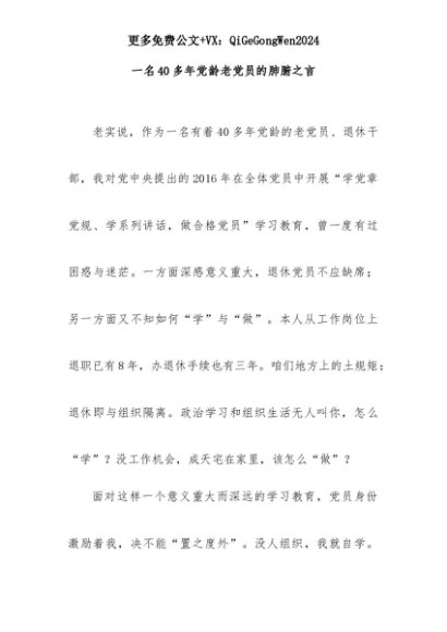 【七哥公文】2025年:【七哥公文】一名40多年党龄老党员的肺腑之言+更多免费公文+VX:QiGeGongWen2024+更多免费公文+VX:QiGeGongWen2024