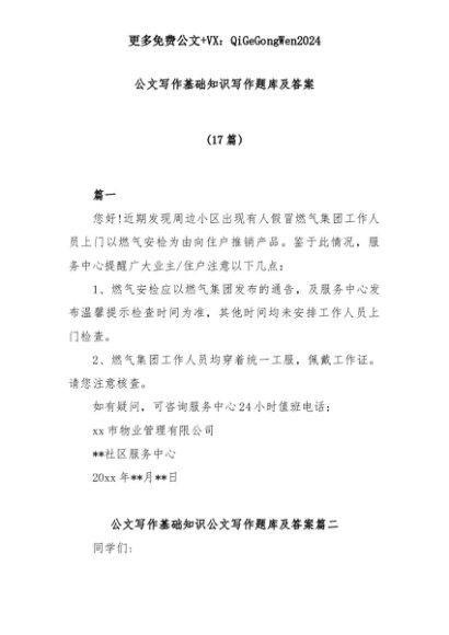 【七哥公文】2025年:【七哥公文】(17篇)公文写作基础知识写作题库及答案+更多免费公文+VX:QiGeGongWen2024+更多免费公文+VX:QiGeGongWen2024