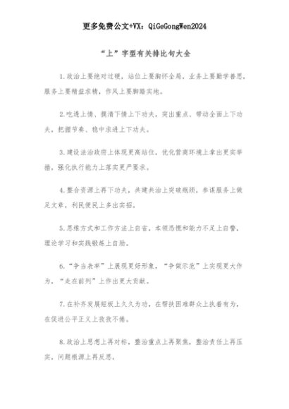 【七哥公文】2025年:【七哥公文】“上”字型有关排比句大全+更多免费公文+VX:QiGeGongWen2024+更多免费公文+VX:QiGeGongWen2024