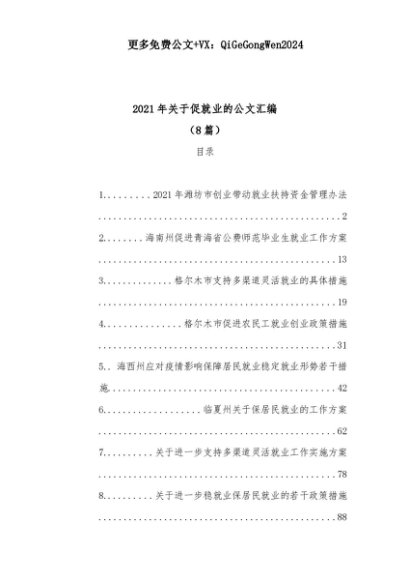 【七哥公文】2025年:【七哥公文】(8篇)2021年关于促就业的公文汇编+更多免费公文+VX:QiGeGongWen2024+更多免费公文+VX:QiGeGongWen2024