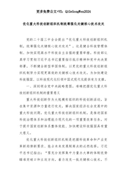 【七哥公文】2025年:【七哥公文】优化重大科技创新组织机制统筹强化关键核心技术攻关+更多免费公文+VX:QiGeGongWen2024+更多免费公文+VX:QiGeGongWen2024