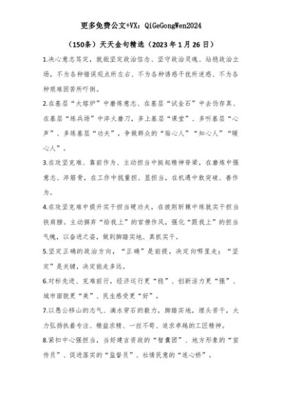 【七哥公文】2025年:【七哥公文】(150条)天天金句精选(2023年1月26日)+更多免费公文+VX:QiGeGongWen2024+更多免费公文+VX:QiGeGongWen2024