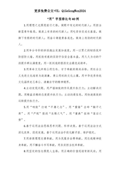 【七哥公文】2025年:【七哥公文】“用”字型排比句40例+更多免费公文+VX:QiGeGongWen2024+更多免费公文+VX:QiGeGongWen2024