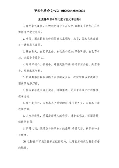 【七哥公文】2025年:【七哥公文】聚焦青年100例过渡句让文章出彩+更多免费公文+VX:QiGeGongWen2024+更多免费公文+VX:QiGeGongWen2024