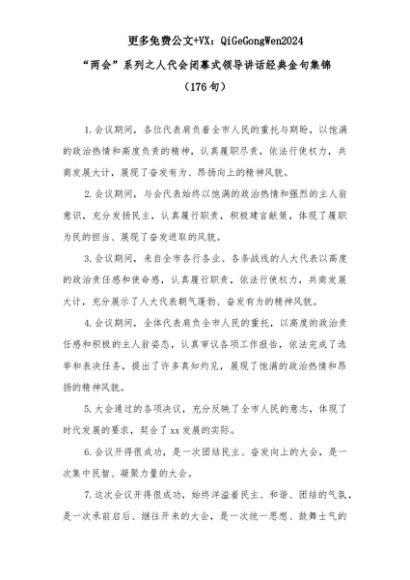 【七哥公文】2025年:【七哥公文】“两会”系列之人代会闭幕式领导讲话经典金句集锦(176句)+更多免费公文+VX:QiGeGongWen2024+更多免费公文+VX:QiGeGongWen2024