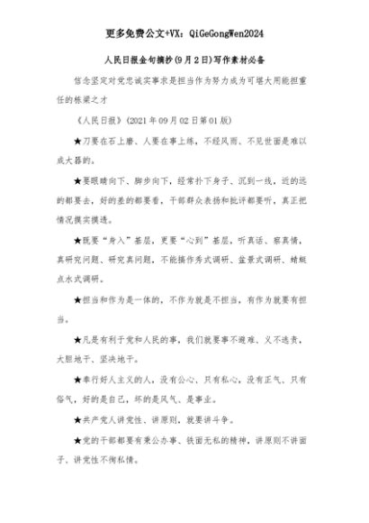 【七哥公文】2025年:【七哥公文】人民日报金句摘抄(9月2日)写作素材必备+更多免费公文+VX:QiGeGongWen2024+更多免费公文+VX:QiGeGongWen2024