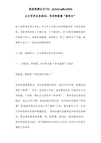 【七哥公文】2025年:【七哥公文】公文写作业务培训:写材料就像“搭积木”+更多免费公文+VX:QiGeGongWen2024+更多免费公文+VX:QiGeGongWen2024