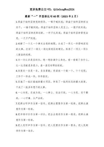 【七哥公文】2025年:【七哥公文】最新“一”字型排比句40例(2023年2月)+更多免费公文+VX:QiGeGongWen2024+更多免费公文+VX:QiGeGongWen2024