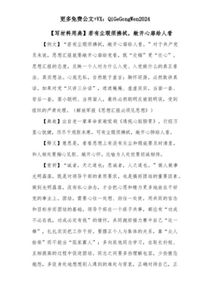 【七哥公文】2025年:【七哥公文】【写材料用典】若有尘瑕须拂拭,敞开心扉给人看+更多免费公文+VX:QiGeGongWen2024+更多免费公文+VX:QiGeGongWen2024