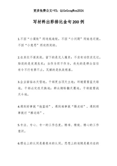 【七哥公文】2025年:【七哥公文】写材料出彩排比金句200例+更多免费公文+VX:QiGeGongWen2024+更多免费公文+VX:QiGeGongWen2024