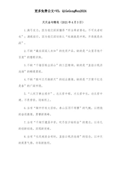 【七哥公文】2025年:【七哥公文】天天金句精选(2021年4月3日)+更多免费公文+VX:QiGeGongWen2024+更多免费公文+VX:QiGeGongWen2024