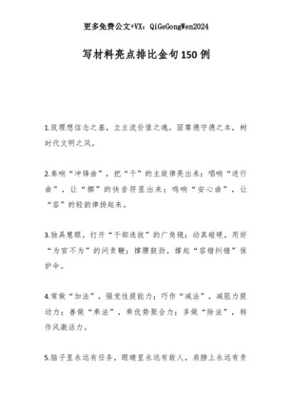 【七哥公文】2025年:【七哥公文】写材料亮点排比金句150例+更多免费公文+VX:QiGeGongWen2024+更多免费公文+VX:QiGeGongWen2024