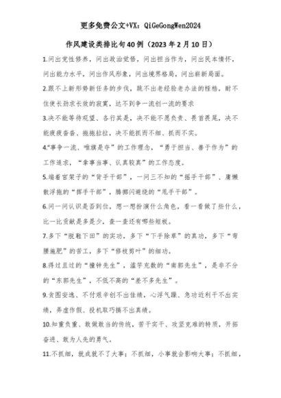 【七哥公文】2025年:【七哥公文】作风建设类排比句40例(2023年2月10日)+更多免费公文+VX:QiGeGongWen2024+更多免费公文+VX:QiGeGongWen2024