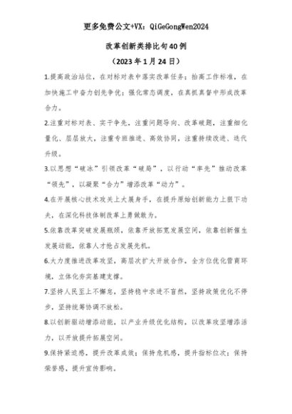 【七哥公文】2025年:【七哥公文】改革创新类排比句40例+更多免费公文+VX:QiGeGongWen2024+更多免费公文+VX:QiGeGongWen2024