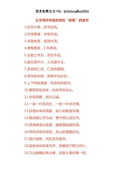 【七哥公文】2025年:【七哥公文】公文写作中适合放在“段首”的金句+更多免费公文+VX:QiGeGongWen2024+更多免费公文+VX:QiGeGongWen2024