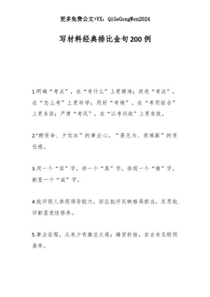 【七哥公文】2025年:【七哥公文】写材料经典排比金句200例+更多免费公文+VX:QiGeGongWen2024+更多免费公文+VX:QiGeGongWen2024