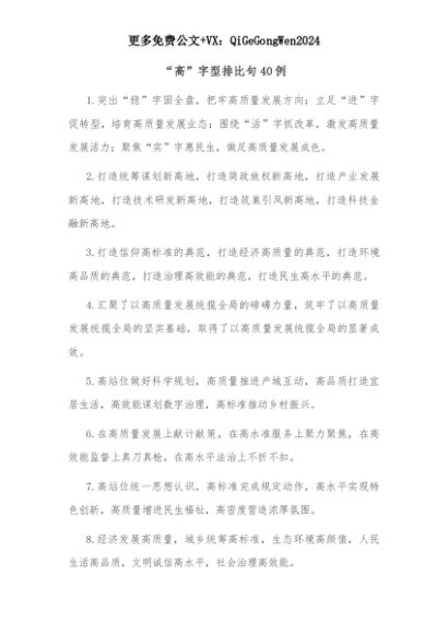 【七哥公文】2025年:【七哥公文】“高”字型排比句40例+更多免费公文+VX:QiGeGongWen2024+更多免费公文+VX:QiGeGongWen2024