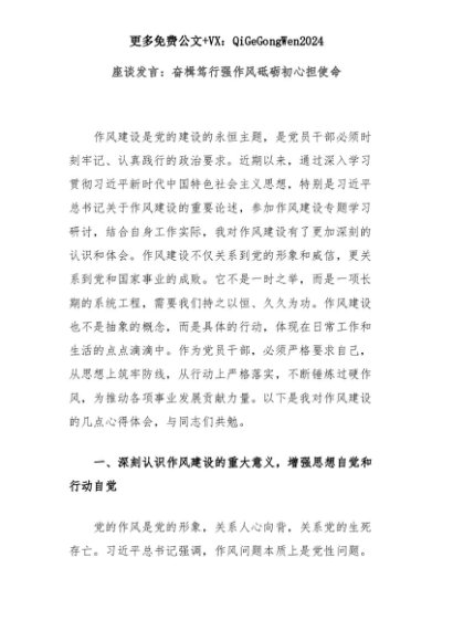 【七哥公文】2025年:【七哥公文】座谈发言:奋楫笃行强作风砥砺初心担使命+更多免费公文+VX:QiGeGongWen2024+更多免费公文+VX:QiGeGongWen2024