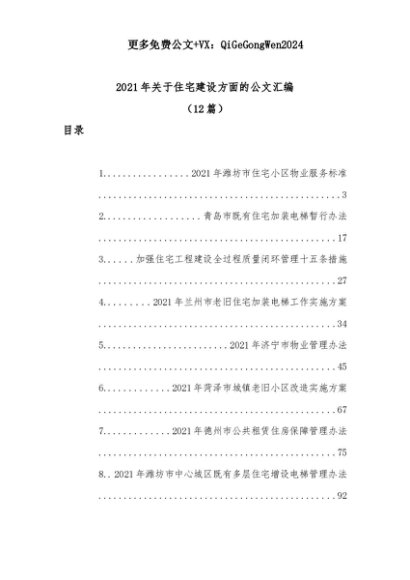 【七哥公文】2025年:【七哥公文】(12篇)2021年关于住宅建设方面的公文汇编+更多免费公文+VX:QiGeGongWen2024+更多免费公文+VX:QiGeGongWen2024