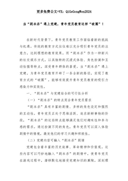 【七哥公文】2025年:【七哥公文】当“剧本杀”遇上党建,青年党员教育这样“破圈”!+更多免费公文+VX:QiGeGongWen2024+更多免费公文+VX:QiGeGongWen2024