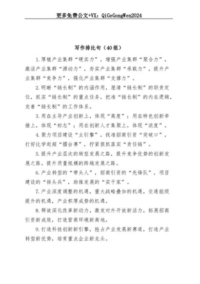 【七哥公文】2025年:【七哥公文】(40组) 写作排比句金句+更多免费公文+VX:QiGeGongWen2024+更多免费公文+VX:QiGeGongWen2024