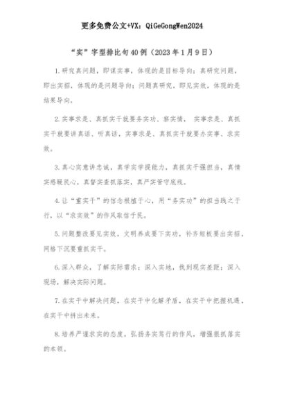 【七哥公文】2025年:【七哥公文】“实”字型排比句40例(2023年1月9日)+更多免费公文+VX:QiGeGongWen2024+更多免费公文+VX:QiGeGongWen2024