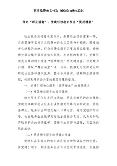【七哥公文】2025年:【七哥公文】锚定“群众满意”,党建引领物业服务“提质增效”+更多免费公文+VX:QiGeGongWen2024+更多免费公文+VX:QiGeGongWen2024