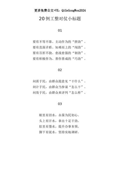 【七哥公文】2025年:【七哥公文】20例工整对仗小标题+更多免费公文+VX:QiGeGongWen2024+更多免费公文+VX:QiGeGongWen2024