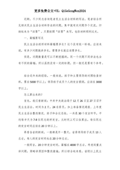 【七哥公文】2025年:【七哥公文】2022年度民主生活会剖析材料写作有“四要”+更多免费公文+VX:QiGeGongWen2024+更多免费公文+VX:QiGeGongWen2024