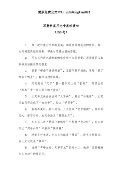 【七哥公文】2025年:【七哥公文】(550句)写材料实用比喻类过渡句+更多免费公文+VX:QiGeGongWen2024+更多免费公文+VX:QiGeGongWen2024