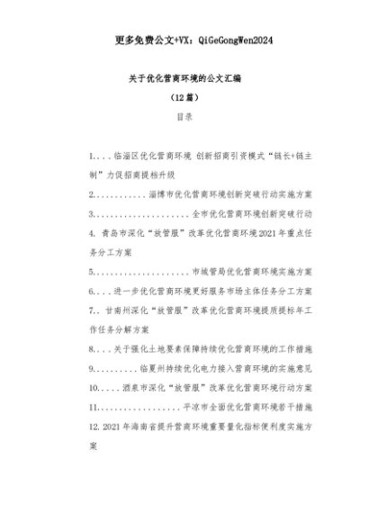 【七哥公文】2025年:【七哥公文】(12篇)关于优化营商环境的公文汇编+更多免费公文+VX:QiGeGongWen2024+更多免费公文+VX:QiGeGongWen2024